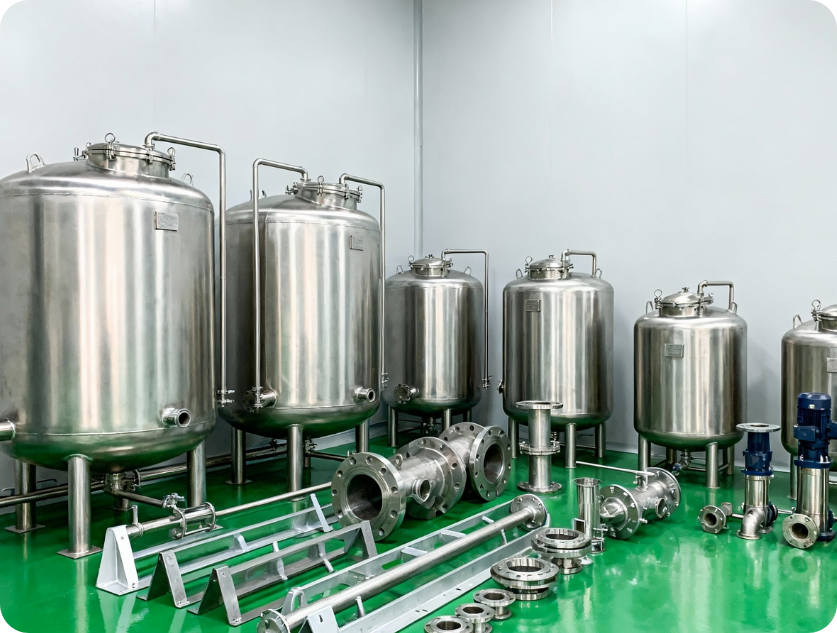 | Bồn công nghiệp & phụ kiện cơ khí – Chế tạo bồn chứa, bồn áp lực, các phụ kiện, giá đỡ và kết nối cơ khí với độ chính xác cao. |