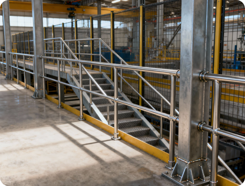 | Kết cấu thép & hệ thống an toàn – Thiết kế và lắp đặt lan can, railing và hàng rào thép không gỉ/thép mềm, đáp ứng tiêu chuẩn an toàn; sản phẩm bền, chống rỉ và tùy chỉnh |